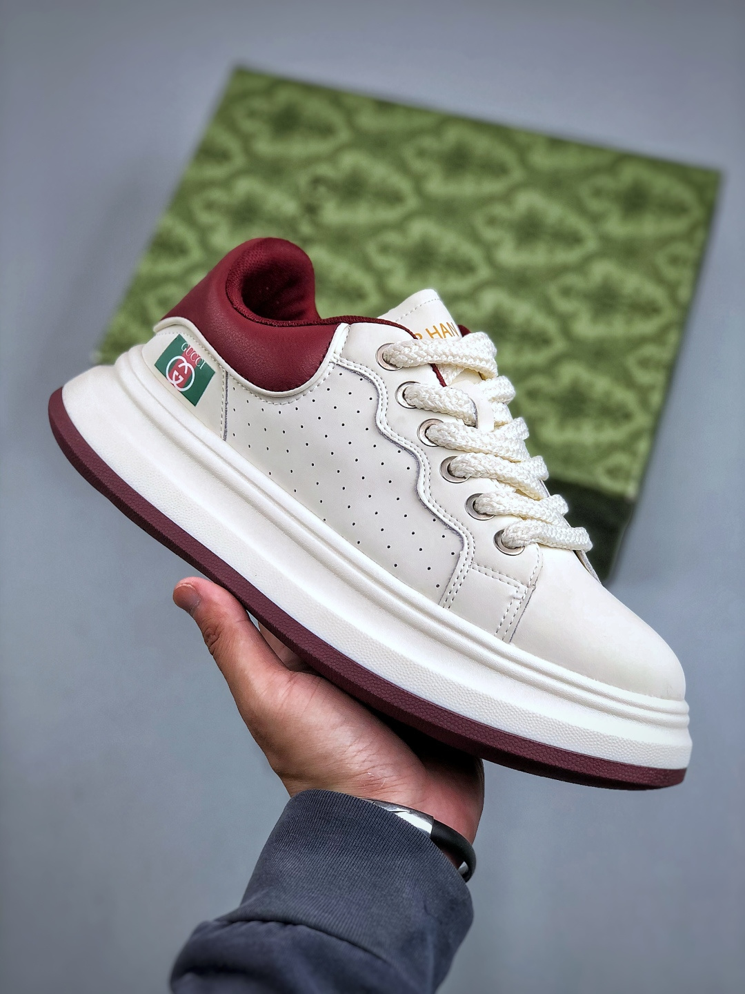 {"product":{ "goodsID":10969693, "skuid":2646556, "relatedCode":"", "cat": 1682, "brand": -1, "goodsIsShow":1, "price":123.00, "skuImage":"https://xcimg.szwego.com/imgHD/2a1e00a1/20251015/cmp_i1760468559548_1339_0_0.jpg?imageMogr2/auto-orient/thumbnail/!650x650r/quality/100/format/jpg", "skuImage_small":"https://xcimg.szwego.com/imgHD/2a1e00a1/20251015/cmp_i1760468559548_1339_0_0.jpg?imageMogr2/auto-orient/thumbnail/!440x440r/quality/100/format/jpg", "skuIsShow": 1, "Limited": 0, "LimitedMin": 0, "skuStore": 999, "skuSellCounter":0, "skuReviewCounter":0, "cateAttention":"", "cateAttentionUrl":"", "cateAttentionContent":"", "goodsName":"Z Gucci Gucci Screener GG High Top Sneaker", "goodsBrand":"", "category":"Shoes", "sizeChartID":"1", "promotion":false, "option_image_text_hide":false, "declaration":"Shoes" },"time":1764455219710}